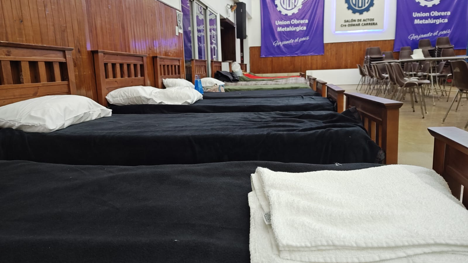 En la primera noche 17 personas decidieron descansar en el salón de usos múltiples del gremio, que está calefaccionado. “Es un gran esfuerzo de la municipalidad, la UOM, el sindicato de camioneros, y demás instituciones. Incluso una empresa se propuso para entregar las viandas cada día”.