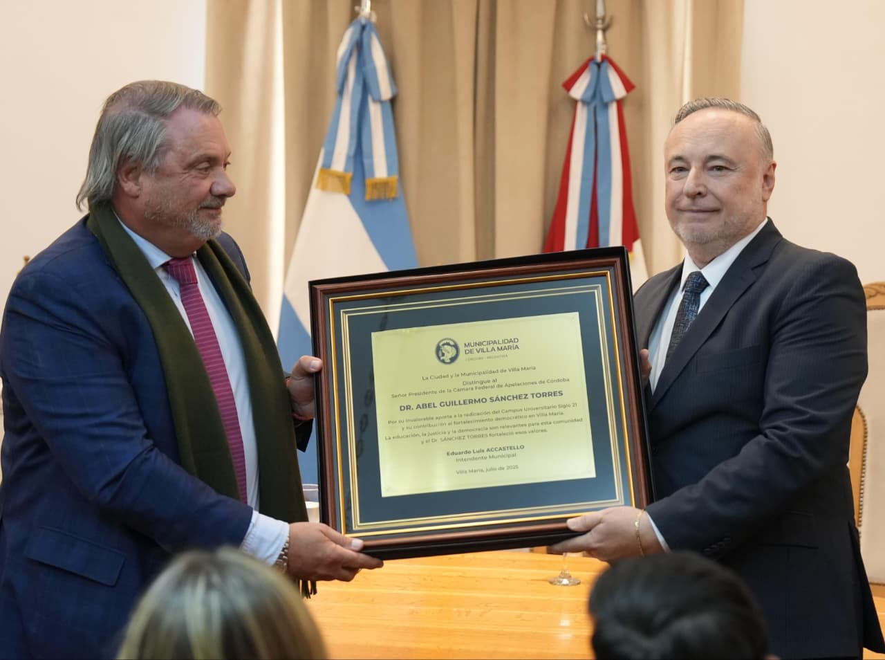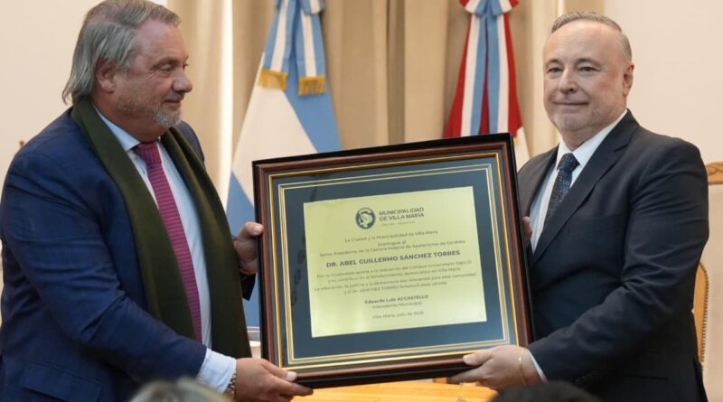 El intendente Eduardo Accastello destacó la trayectoria del doctor Abel Sánchez Torres, presidente de la Cámara de Apelaciones de Córdoba y figura relevante de la justicia y la academia de la provincia. Es especialista en derecho penal y a lo largo de su vida profesional abordó temáticas como derechos humanos, narcotráfico y delitos económicos.