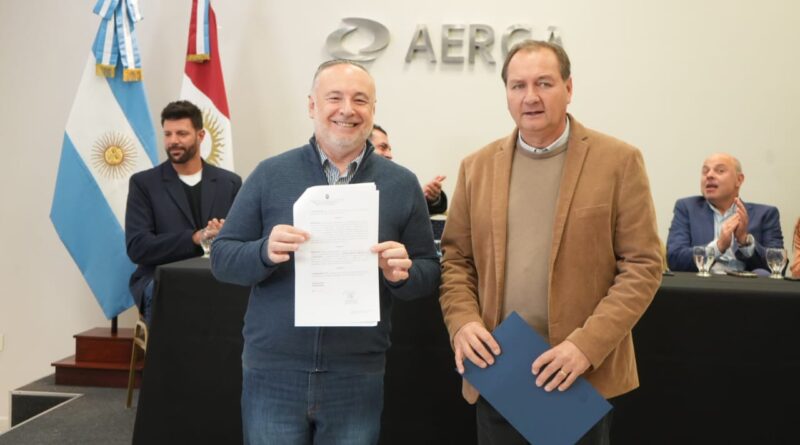 El intendente Eduardo Accastello junto al ministro de Producción, Ciencia e Innovación Tecnológica, Pedro Dellarossa, entregaron un aporte no reembolsable a Aerca para conformar el segundo Centro Comercial a Cielo Abierto de Villa María.