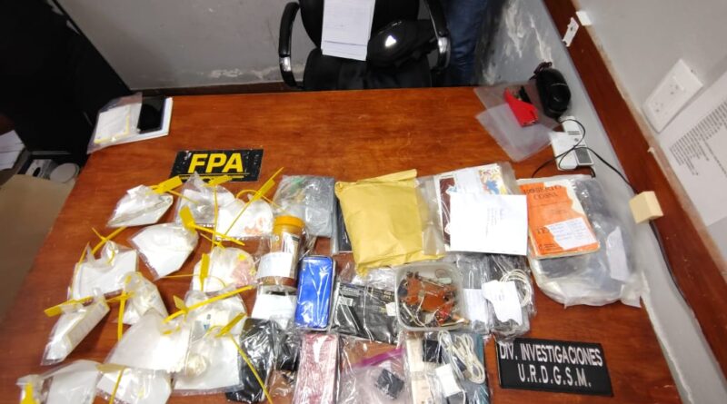 En la ocasión se realizó el allanamiento de oficinas administrativas del Servicio Penitenciario así como también en la totalidad de los pabellones A,B,C y D (donde se alojan detenidos procesados y condenados), en el cual, según se informó oficialmente, obtuvieron resultado positivo, secuestrando documentaciones varias, 28 teléfonos celulares, 54,7 gramos de marihuana, 25 gramos de cocaína, 17 plaquetas de cargadores de celulares, cables USB, 02 Pastillas de éxtasis, 10 de anfetamina, una pastilla de brolanfetamina, una pastilla de dixetosimetilafetamina, nueve pastillas sin resultado y tres pastillas en cápsulas que no dieron resultado.