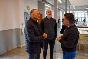 El nuevo edificio del secundario politécnico se apresta a ser una realidad que dotará a la ciudad de una institución educativa con sede propia, destinada a la formación en automatización industrial y robótica. En este marco, el secretario de Educación, Cultura y Promoción de la Ciencia, Rafael Sachetto, compartió una jornada de encuentro e intercambio junto a estudiantes y docentes de la escuela que actualmente funciona en las instalaciones del Inescer, hasta la culminación de la obra que se erige en barrio Botta.