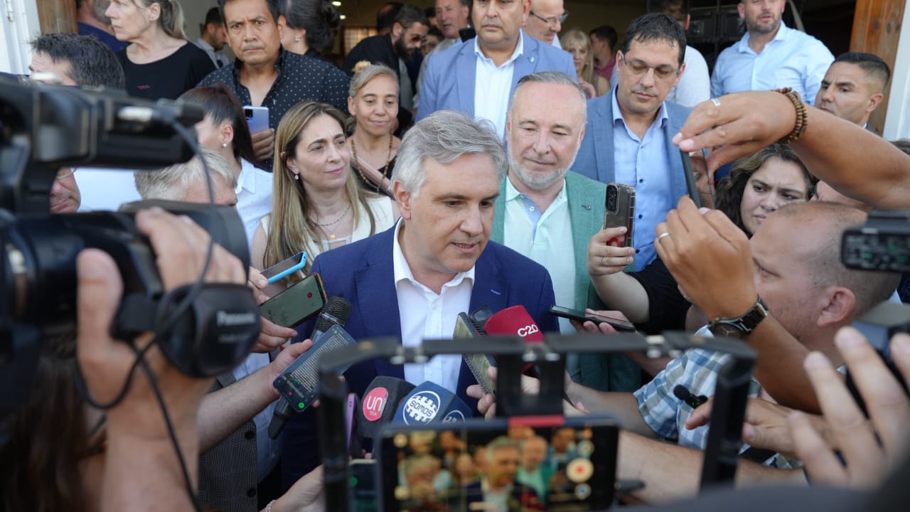 Tras el acto, el gobernador Martín Llaryora habló con la prensa local que lo esperaba en la puerta lateral del salón ubicado en barrio Rivadavia.