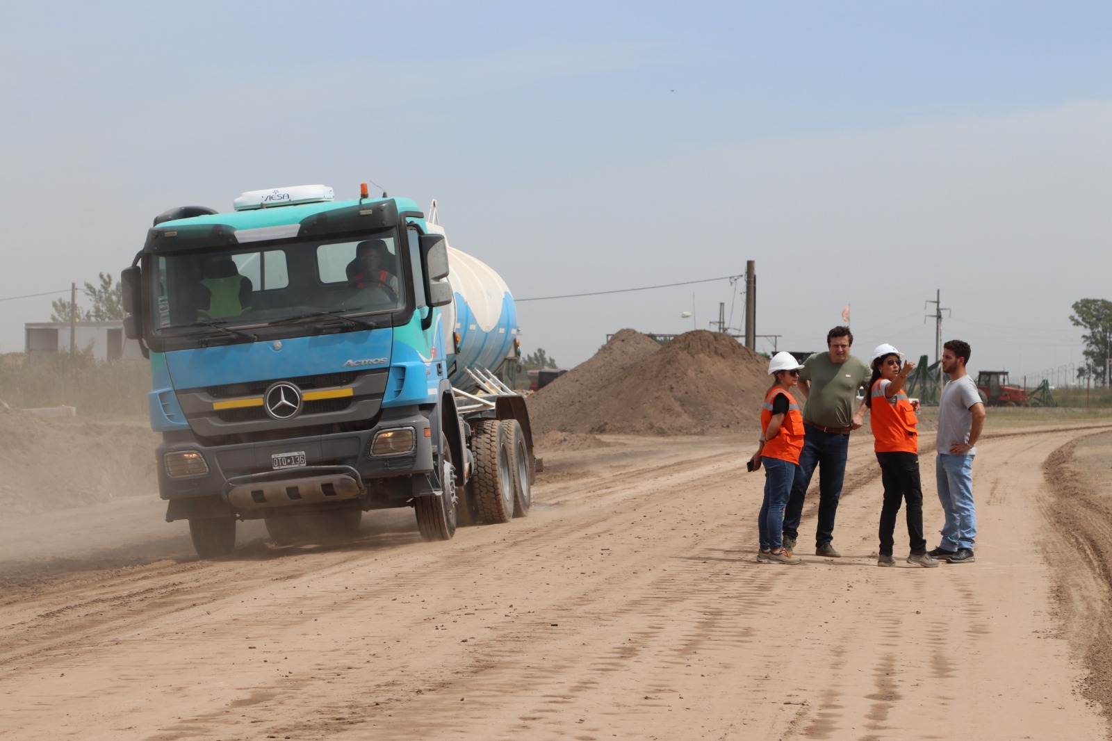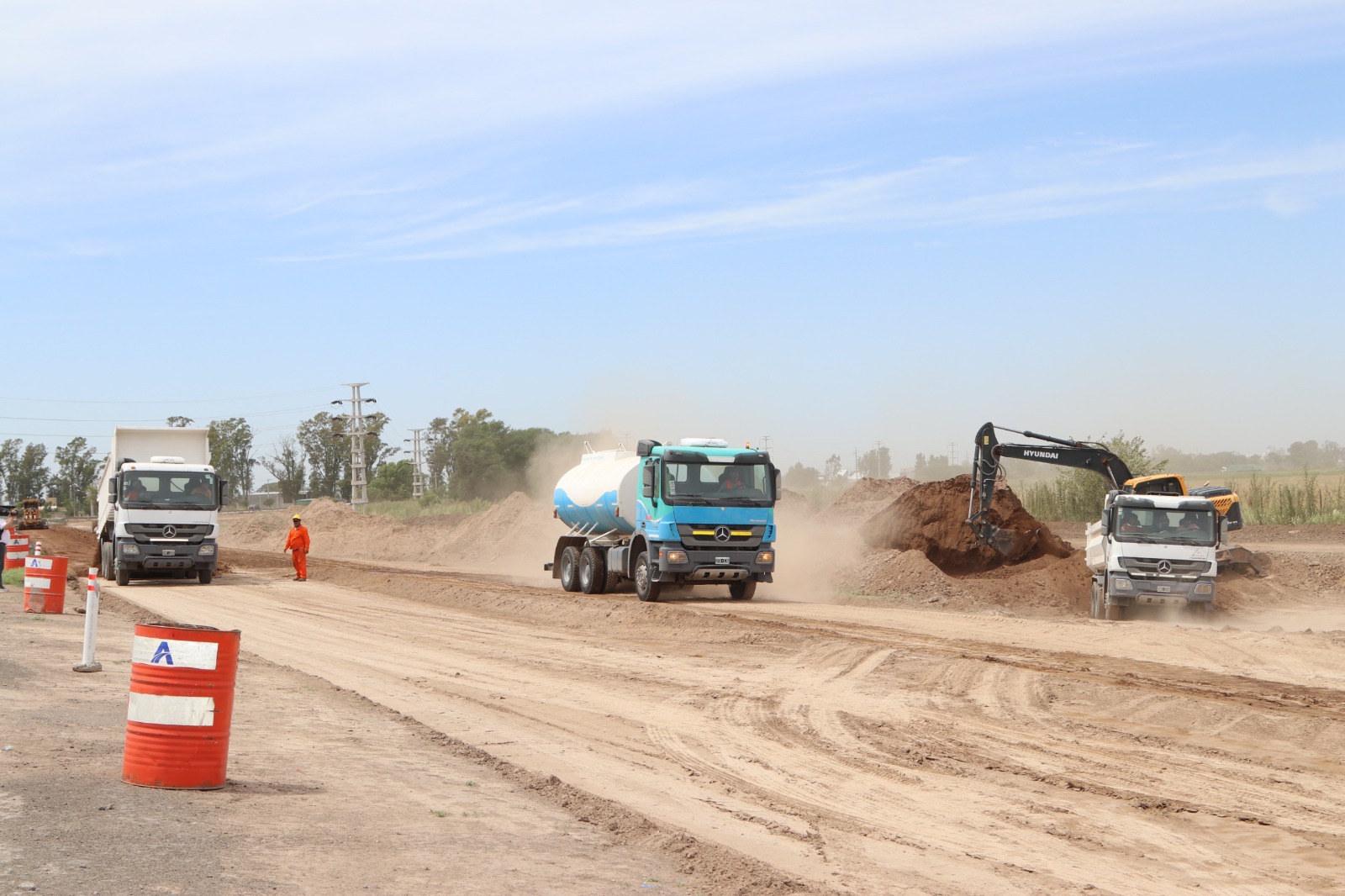 En este marco, informaron que se llevan adelante tareas de movimiento de suelo, construcción del terraplén, bases consolidadas y drenajes.