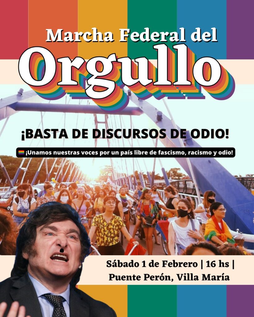Ya empezó a circular por whatsapp y redes sociales el flyer con una invitación a la marcha federal contra los discursos de odio, que se realizará el próximo sábado 1º de febrero en todo el país. Según señalaron desde el colectivo LGBTQ+ la movilización «es urgente» y se organizó luego de los dichos del Presidente Javier Milei en Davos, donde expresó opiniones que ya fueron catalogadas por el colectivo como «fascistas y racistas».
