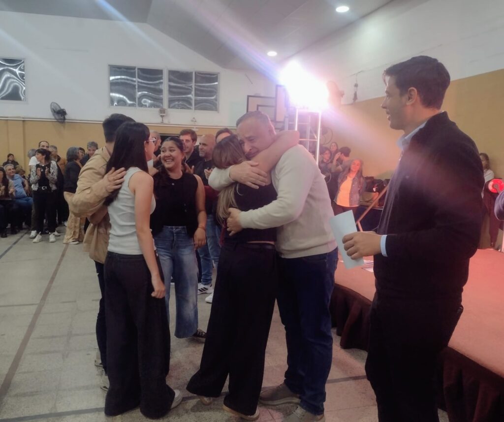 Por Villa Nueva dijeron presente en el acto los exintendentes Marcelo Frossasco y Natalio Graglia, además del concejal Ángelo Valenzano. Uno de los reconocidos por su trayectoria militante fue otro exintendente como Reynaldo Navarro, en uno de los momentos emotivos de la jornada.