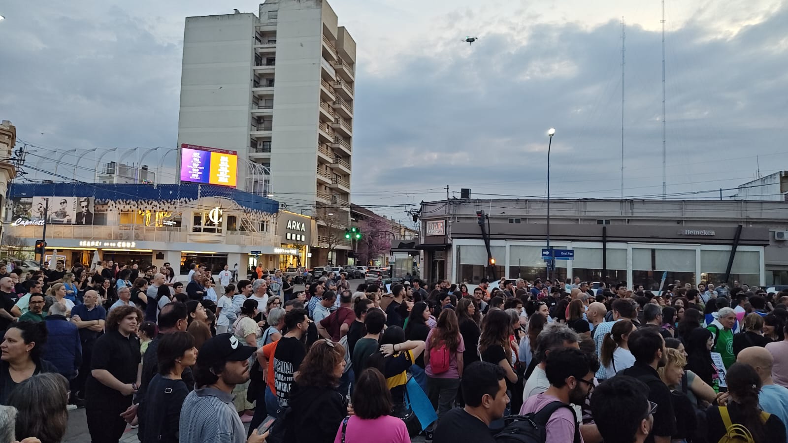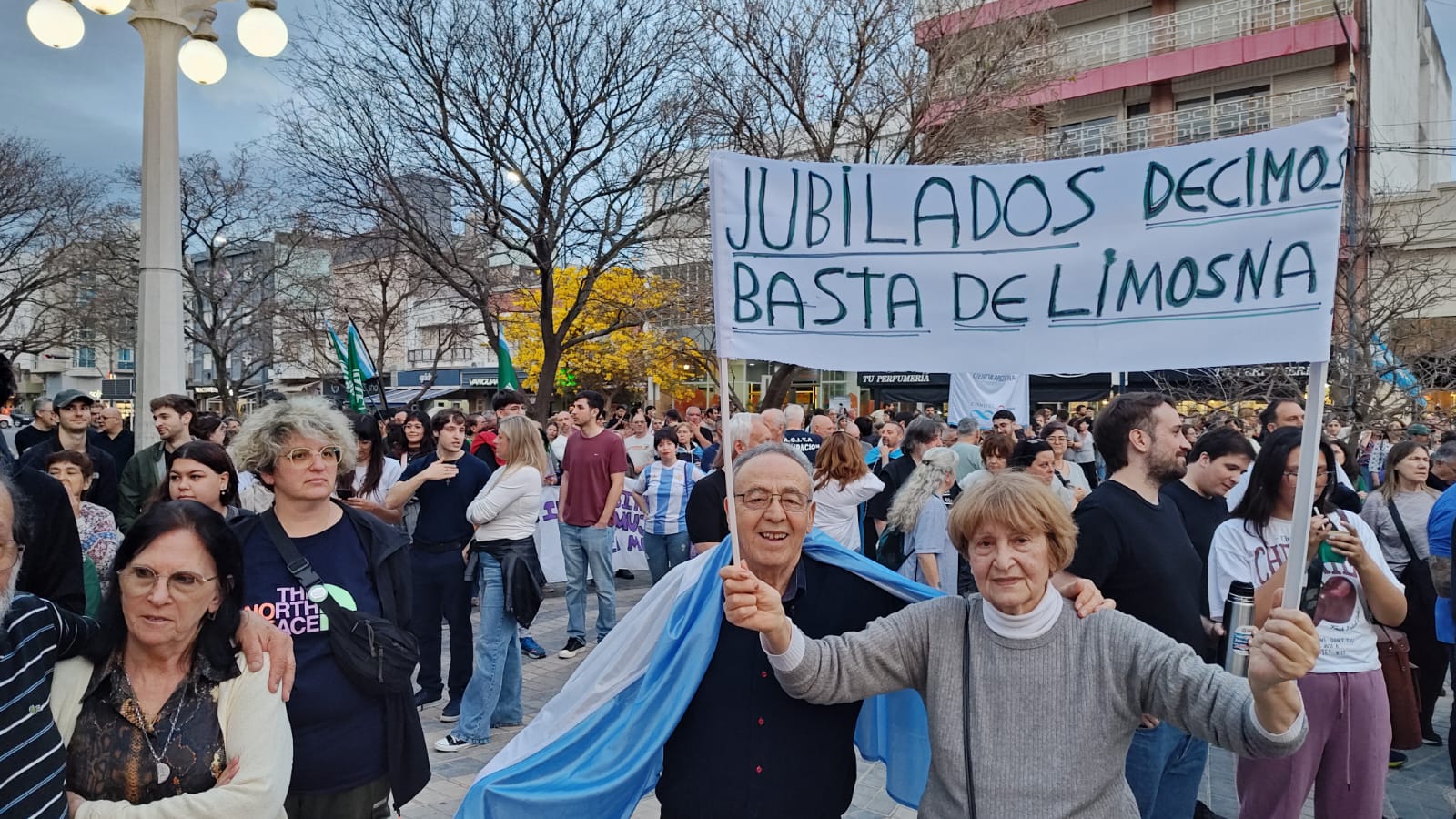 En la plaza esperaban los jubilados que cada miércoles marchan reclamando por todos los recortes sufridos. Juntos dieron una vuelta a la Centenario y se congregaron en la esquina de Buenos Aires y General Paz.