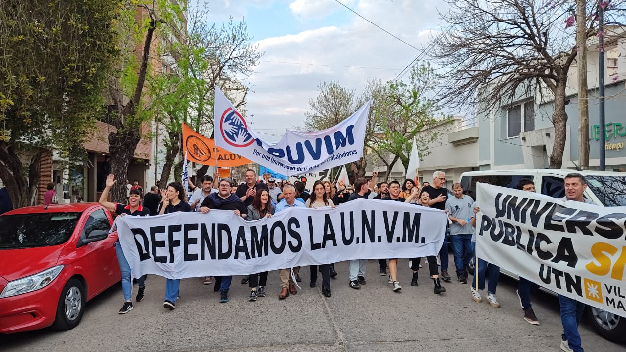 Docentes, no docentes, estudiantes y directivos de la Tecnológica partieron alrededor de las 17 desde su campus hacia el Rectorado de la UNVM. Allí lo esperaba toda la comunidad de la Nacional. Juntos, alrededor de 500 personas, marcharon hacia la plaza Centenario.