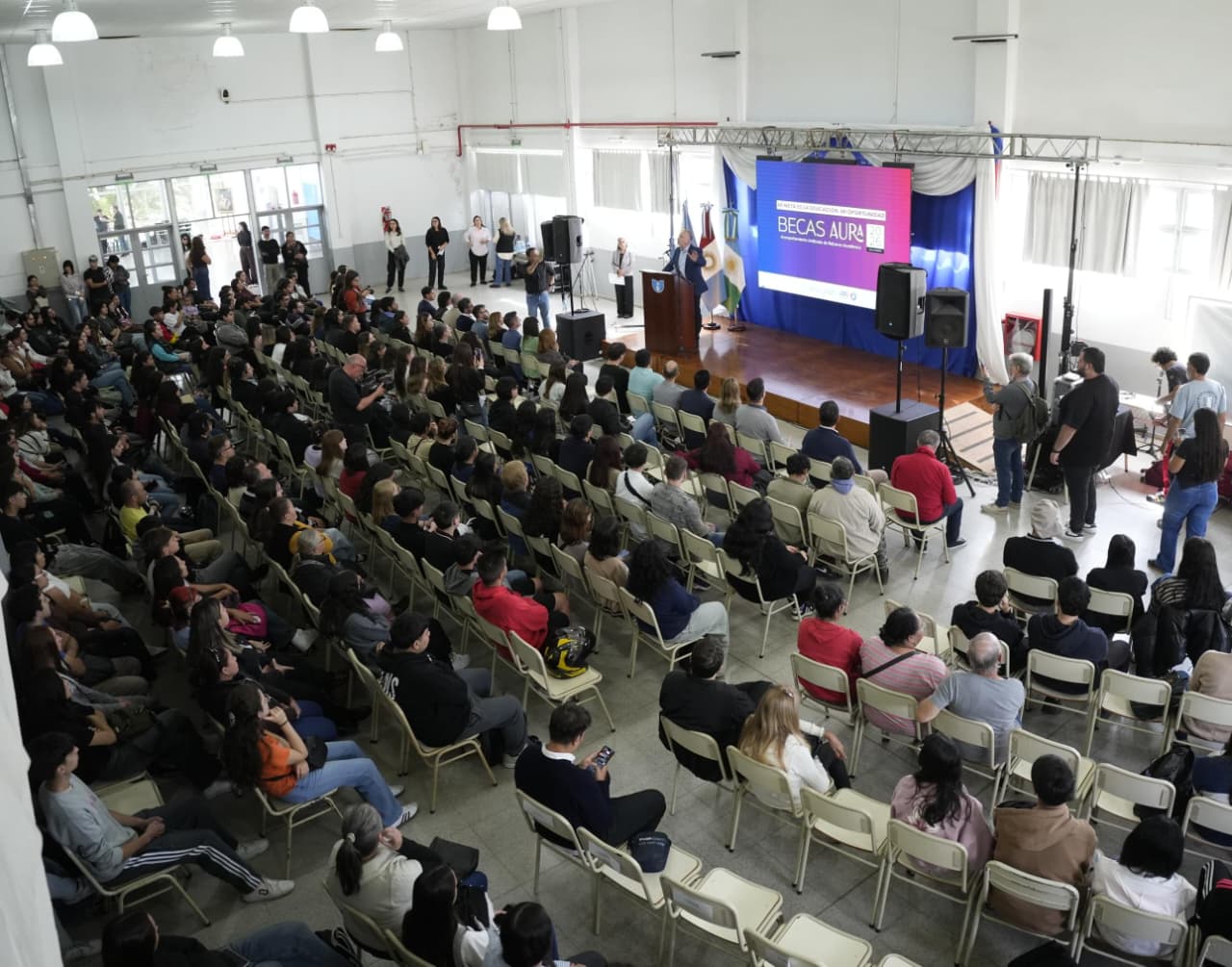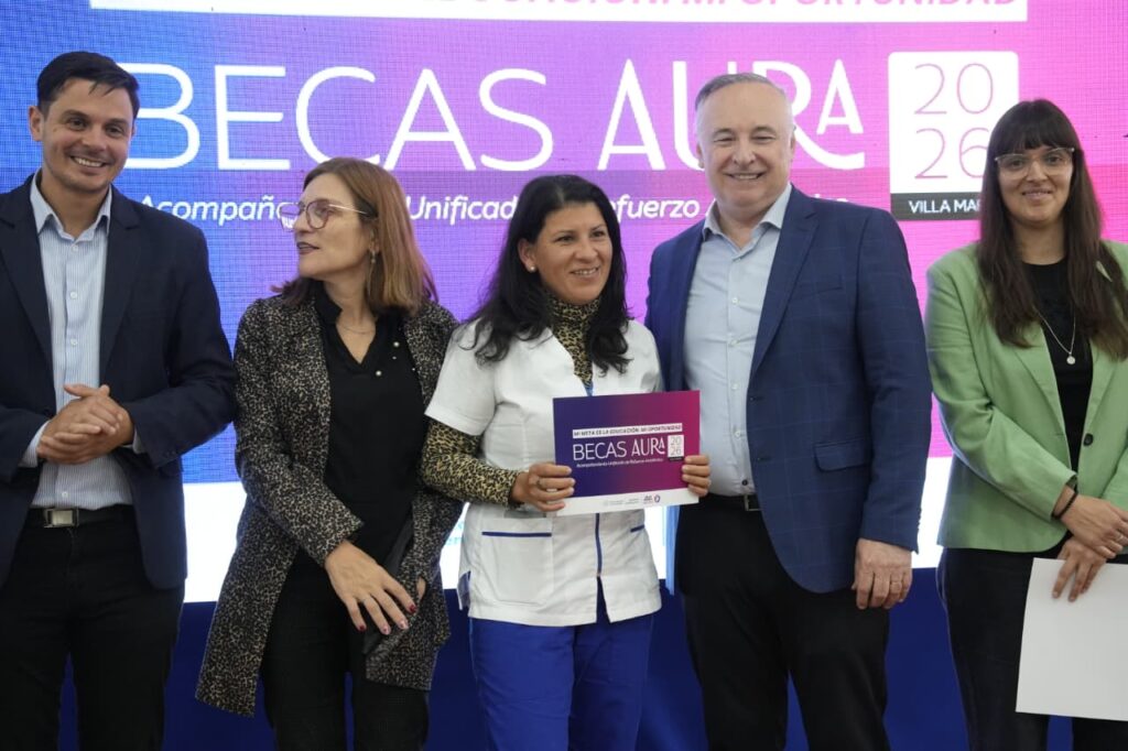Son jóvenes de la ciudad y de 60 localidades que optaron por hacer sus estudios terciarios y/o universitarios en Villa María. Las becas municipales de Acompañamiento Unificado de Refuerzo Académico (A.U.R.A.), fueron entregadas por el intendente, quien estuvo acompañado por parte de su gabinete, en un acto llevado adelante en el IESCER.