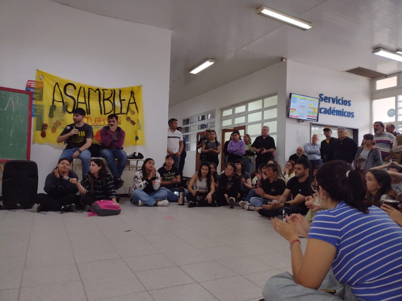 Además de los alumnos, más los pocos docentes y no docentes, la asamblea tuvo la participación de sindicatos como CTA, Cispren y Utedic.