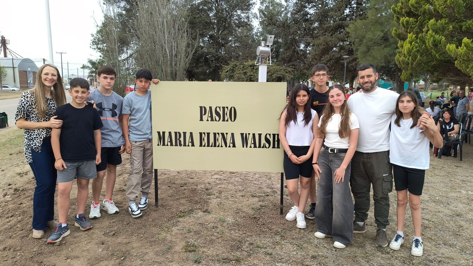Este fin de semana el municipio de Silvio Pellico inauguró el Paseo María Elena Walsh, ubicado en el acceso principal de la localidad. El acto oficial fue encabezado por el intendente Federico Quiñonez, quien estuvo acompañado por la directora de la escuela primaria Martín Güemes, María de Los Ángeles Olivares, miembros del Honorable Concejo Deliberante y los estudiantes que llevaron a cabo el proyecto que dio nombre a este espacio.