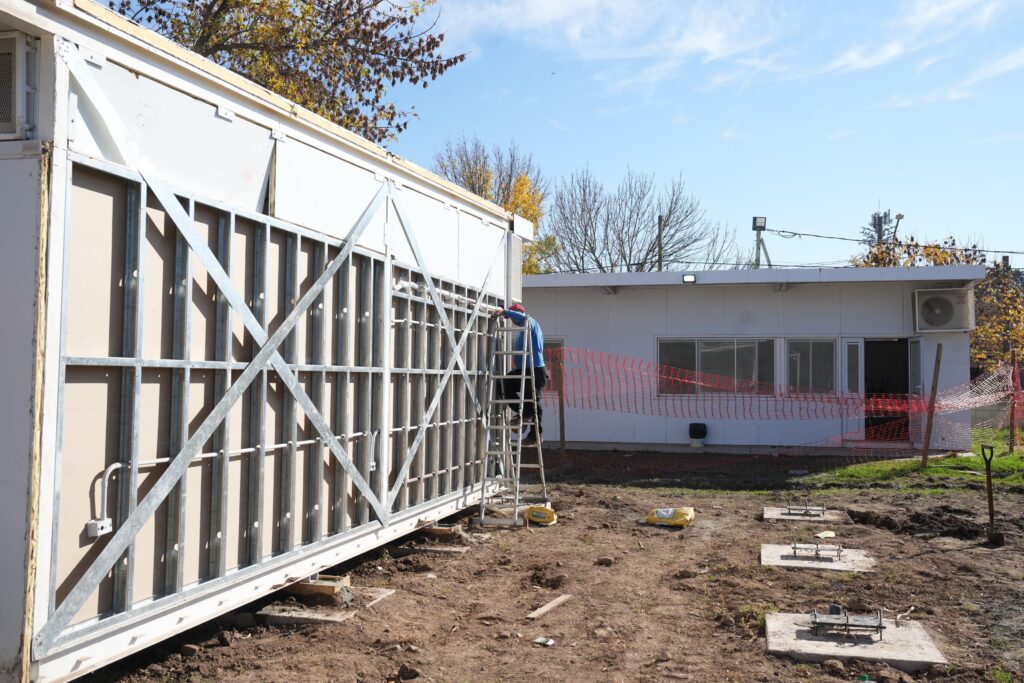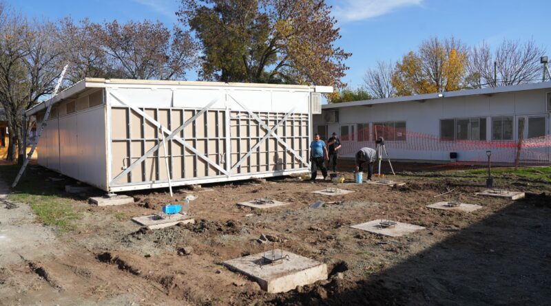 La escuela secundaria Justo José de Urquiza suma tres módulos áulicos totalmente equipados y su instalación comenzó esta semana. El intendente Eduardo Accastello supervisó la obra junto a la directora de la institución Jimena Monesterolo.