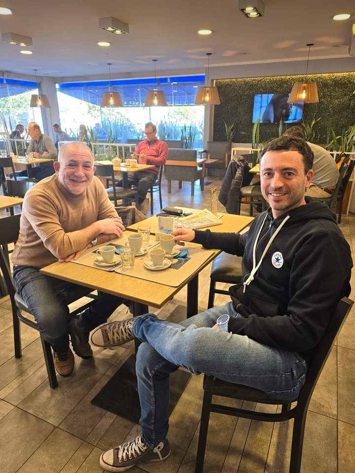 Se los vio tomando un café en un bar. La descripción de la foto fue sencilla: “La base está”.