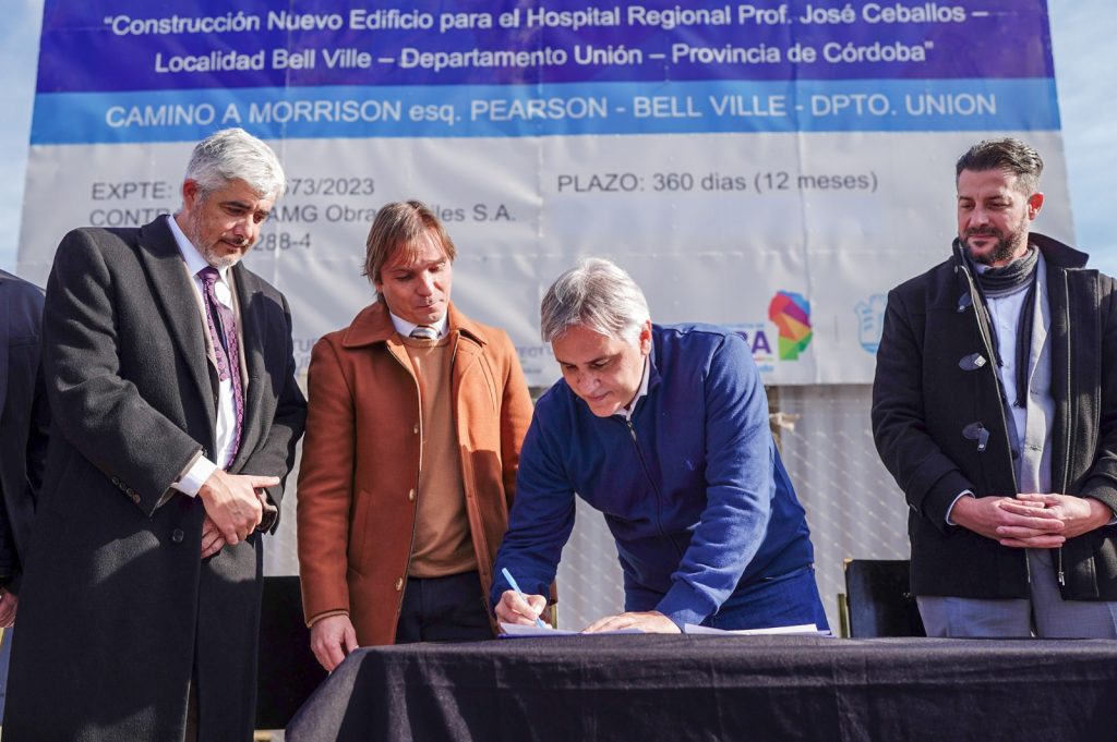 El gobernador Martín Llaryora visitó este miércoles la localidad de Bell Ville, en el departamento Unión, donde encabezó la firma del contrato que da inicio a la construcción del nuevo edificio del Hospital Regional José A. Ceballos.