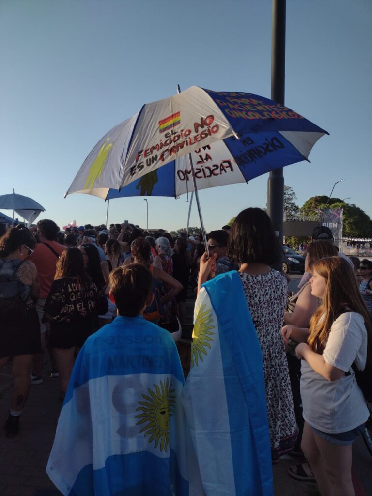 Se escucharon varias alocuciones en una suerte de asamblea pública: “No a esas políticas que nos excluyen”, “no le vamos a permitir a Milei las barbaridades que dice”, “no a tu odio Milei, ni un paso atrás”.
