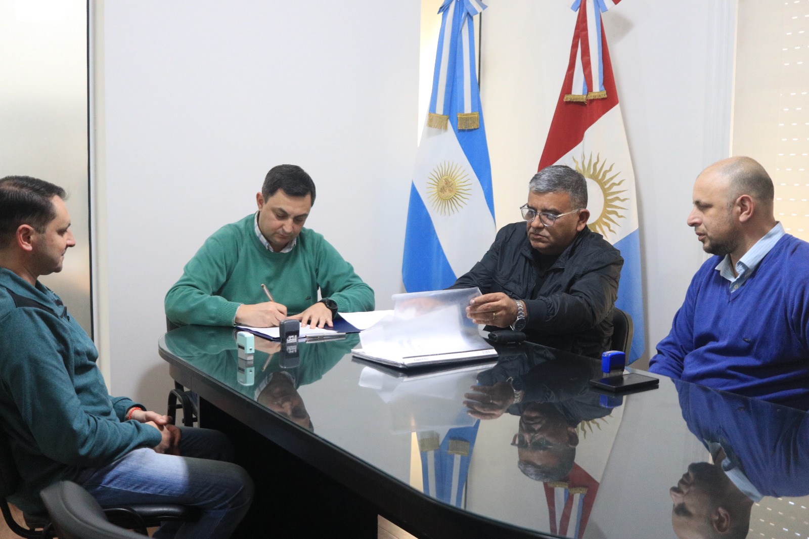 El mismo fue rubricado por el secretario de Gobierno, Cultura y Relaciones Institucionales, Marcos Bovo; el director de Capital Humano, Nicolás Macagno y las autoridades del SUOEM: Sergio Rodríguez (secretario general) y Claudio Bertholet (secretario adjunto).