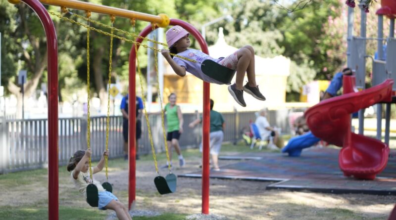 Volvió Accastello e inauguró juegos nuevos en la plaza del Parque de la Vida